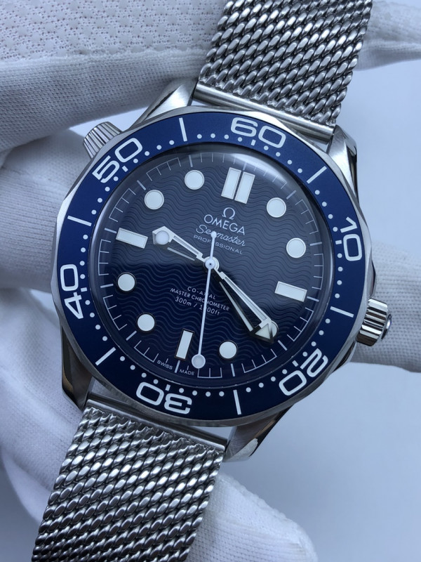 • (준비완료/특급배송/예상수령5일)NO.71/VS공장 오메가 씨마스터 다이버300 제임스본드 60주년 블루물결텍스쳐다이얼 메쉬스트랩